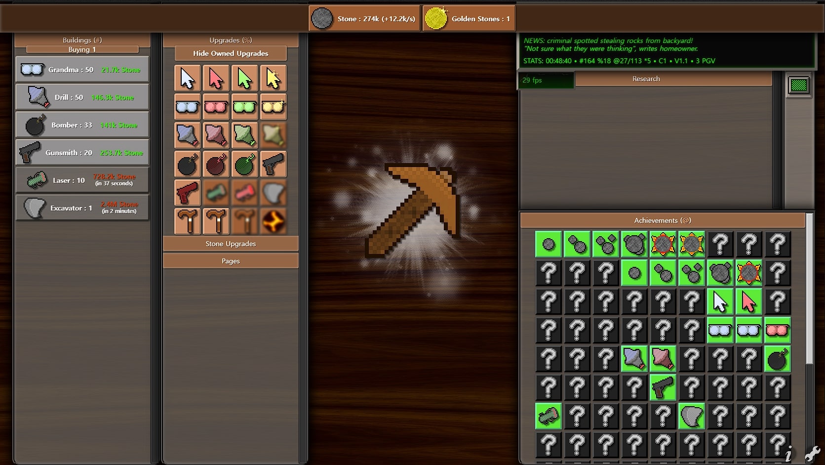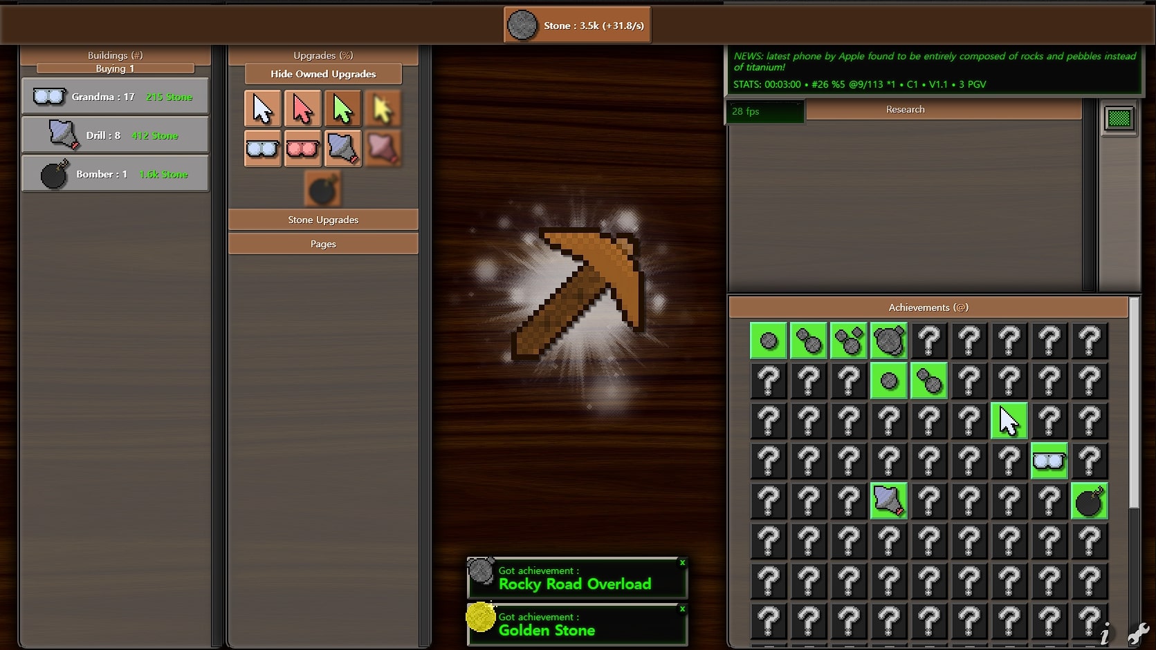 - contains 8 buildings, over 60 upgrades, and 81 (+3) achievements